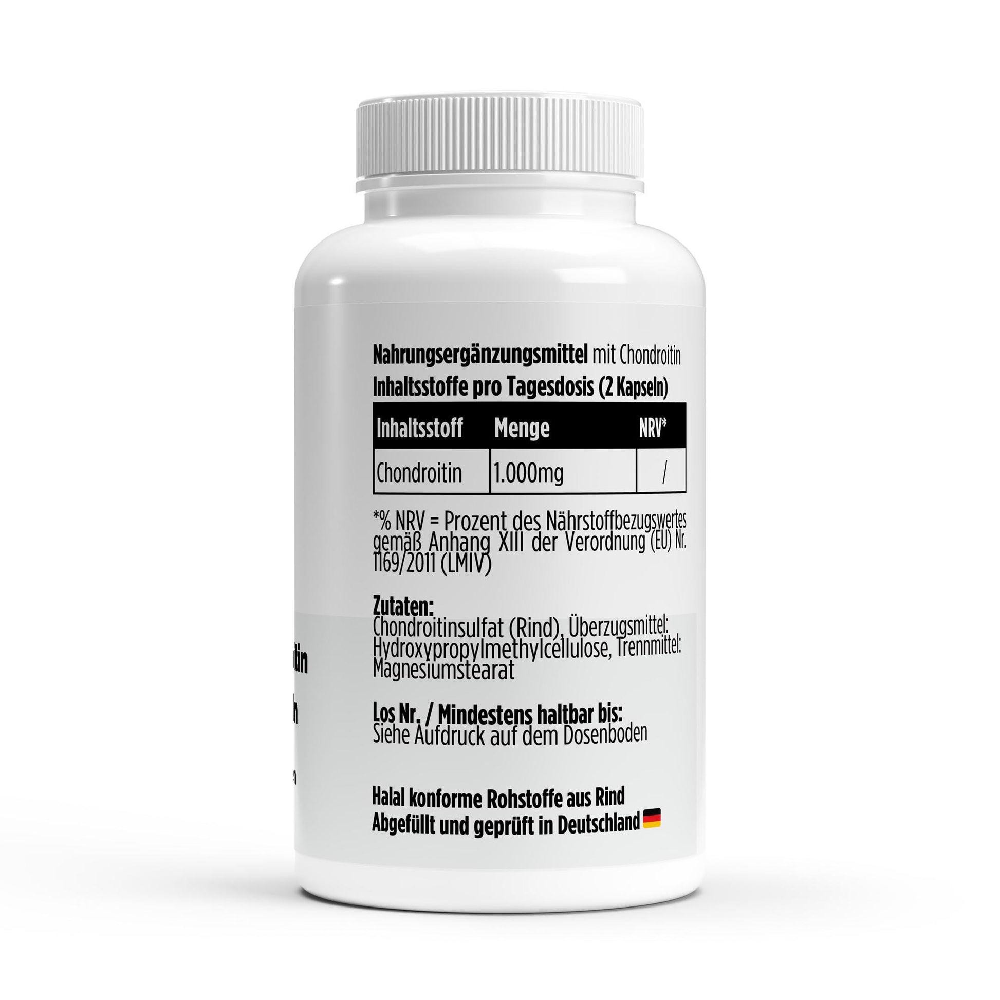 Es wird Chondroitinsulfat aus Rind verwendet – eine klassische Form, die in vielen klinischen Untersuchungen genutzt wurde und halal-konforme Rohstoffe ermöglicht.